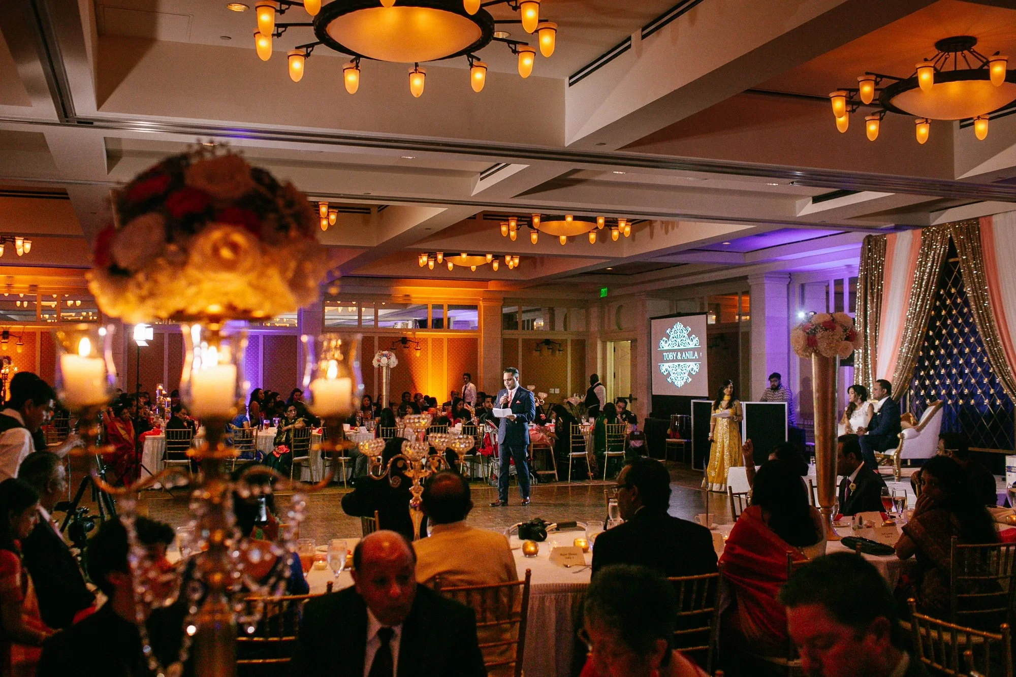 Pro tip: We love uplighting in this venue, it goes a long way with the white ceiling.