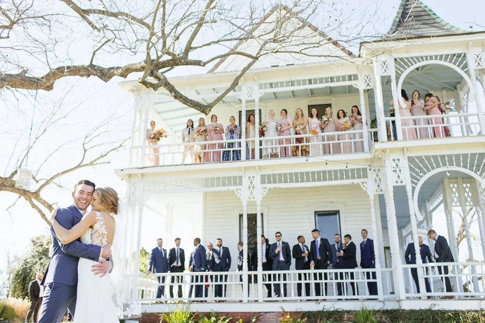 Historic landmark located built in 1900 on 1.5 acres in downtown Round Rock. A gorgeous mansion decked out with antique mirrors, foliage, and chandeliers. Every single room in this venue is photogenic but bonus, one side of the lawn is perfect for the cocktail hour and other for reception.