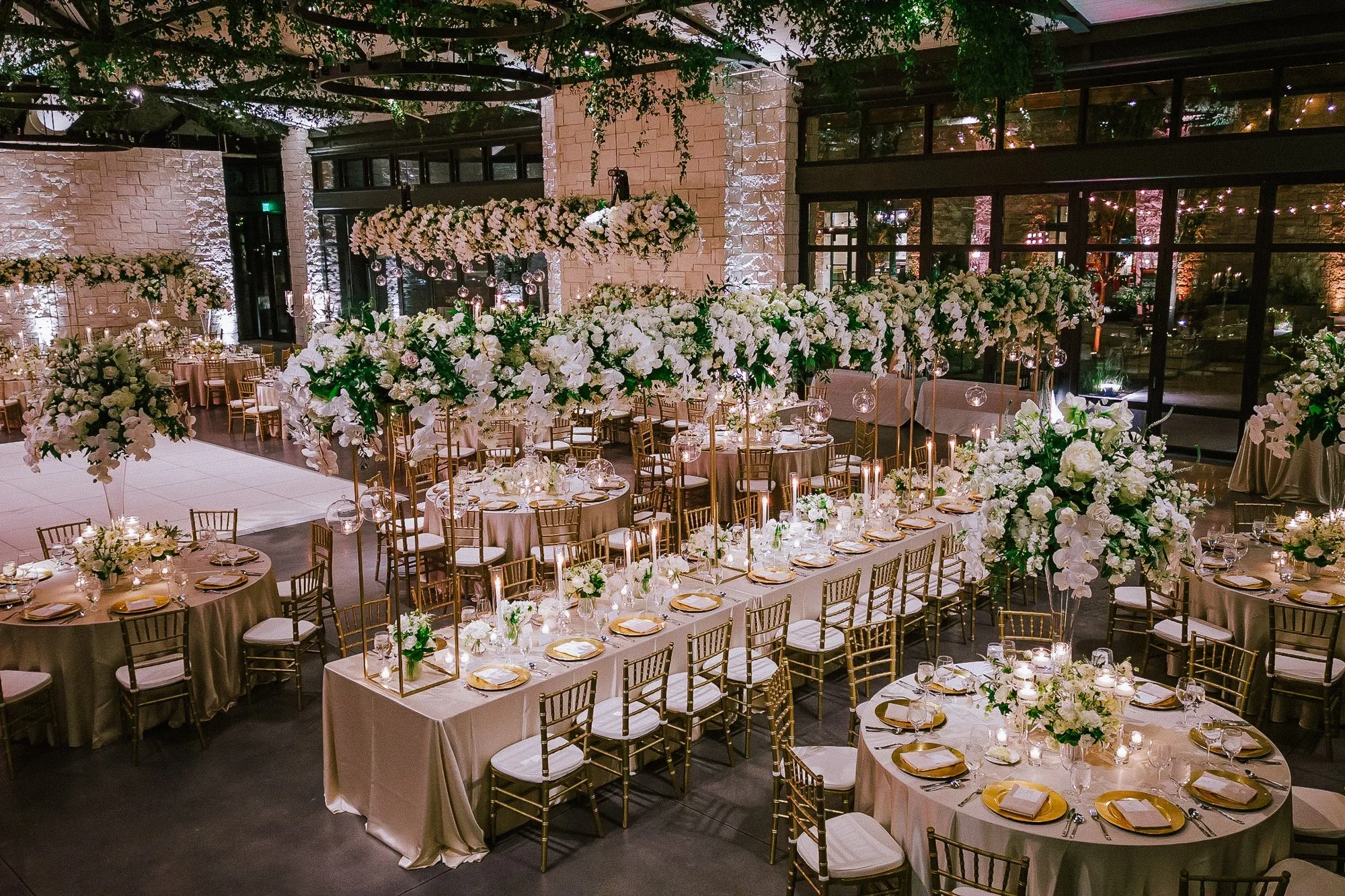 “Springdale Station offers over an acre of outdoor space, 4,300 square feet of wide-open indoor space, two private dressing suites, plentiful furniture to choose from, and over 250 spaces for parking. Pair that with exquisite architecture such as exposed wood trusses, floor-to-ceiling windows, custom lighting options, and rustic wood floors — and you’ll have everything you need to craft an unforgettable night.”