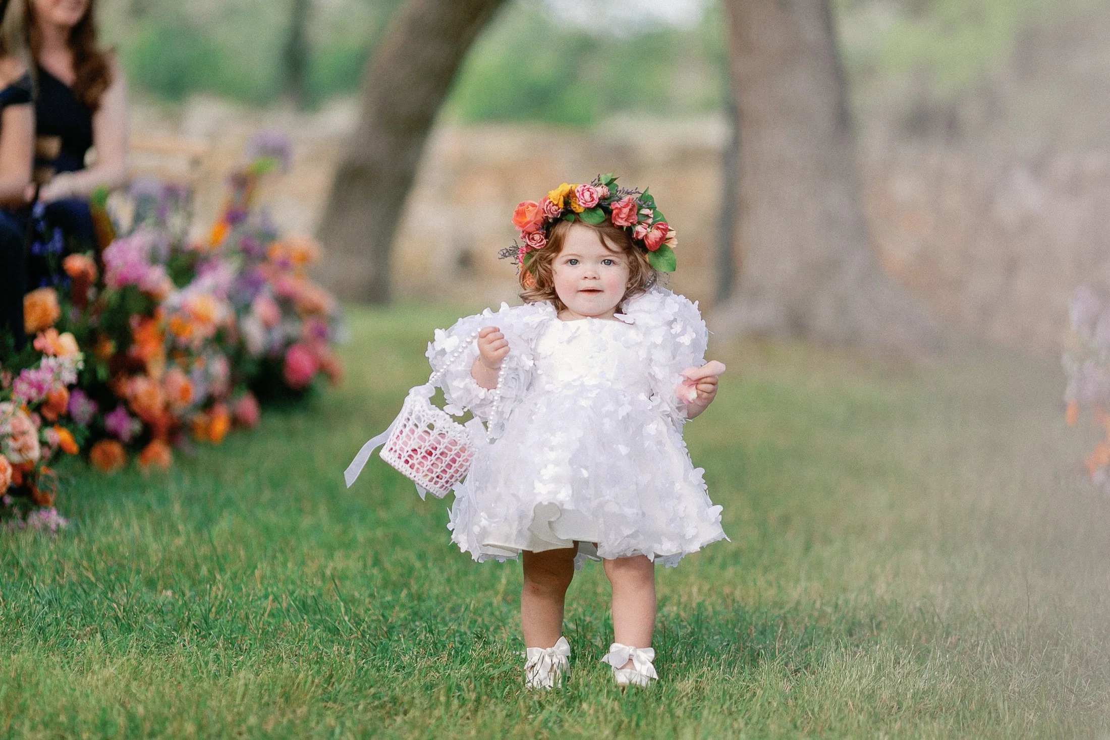 (above) A floral crown, a fluffy dress, and a stare that means business